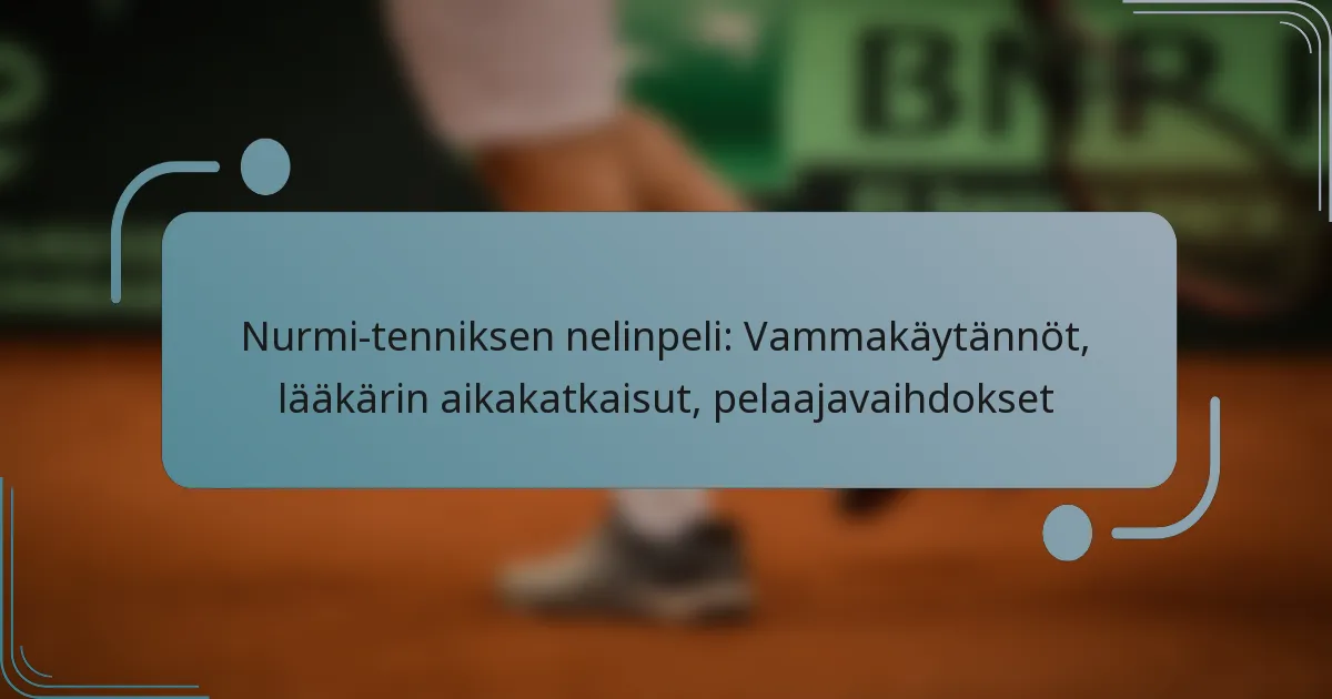 Nurmi-tenniksen nelinpelissä loukkaantumissäännöt ovat ratkaisevan tärkeitä pelaajien turvallisuuden ja ottelun eheyden kannalta, ja ne määrittelevät, miten loukkaantumiset määritellään, arvioidaan ja hallitaan. Lääkärin aikakatkaisut tarjoavat pelaajille mahdollisuuden saada tarvittavaa lääkärinhoitoa, kun taas tiukat säännöt varmistavat reilun pelin. Lisäksi pelaajavaihdot ovat sallittuja tietyissä olosuhteissa, jotka liittyvät loukkaantumiseen tai sairauteen, mikä korostaa näiden sääntöjen ymmärtämisen tärkeyttä pelin reiluuden ylläpitämiseksi.