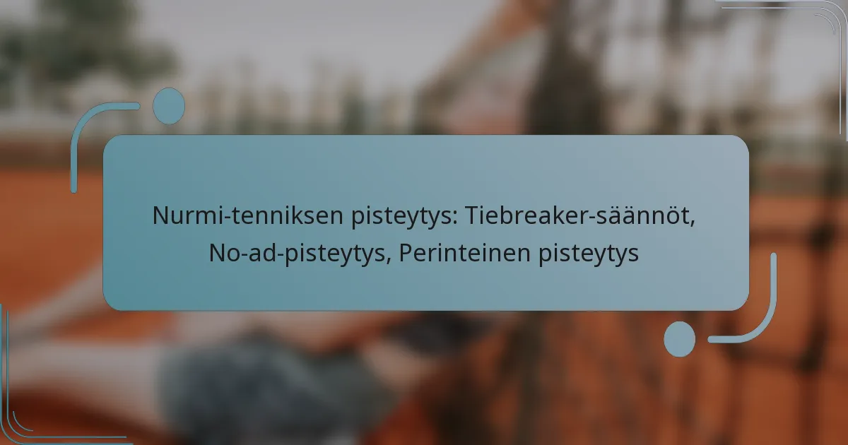 Nurmi-tenniksen pisteytys sisältää erilaisia menetelmiä pelien ja erien tuloksen määrittämiseksi, joilla kaikilla on omat sääntönsä. Tiebreakereita käytetään, kun pisteet saavuttavat 6-6 erässä, kun taas no-ad-pisteytys yksinkertaistaa peliä poistamalla etu-säännön tasatilanteen jälkeen. Perinteinen pisteytys käyttää ainutlaatuista pistelaskujärjestelmää, joka sisältää termejä kuten “nolla”, “tasapeli” ja “etu”, mikä voi olla haastavaa aloittelijoille ymmärtää.
