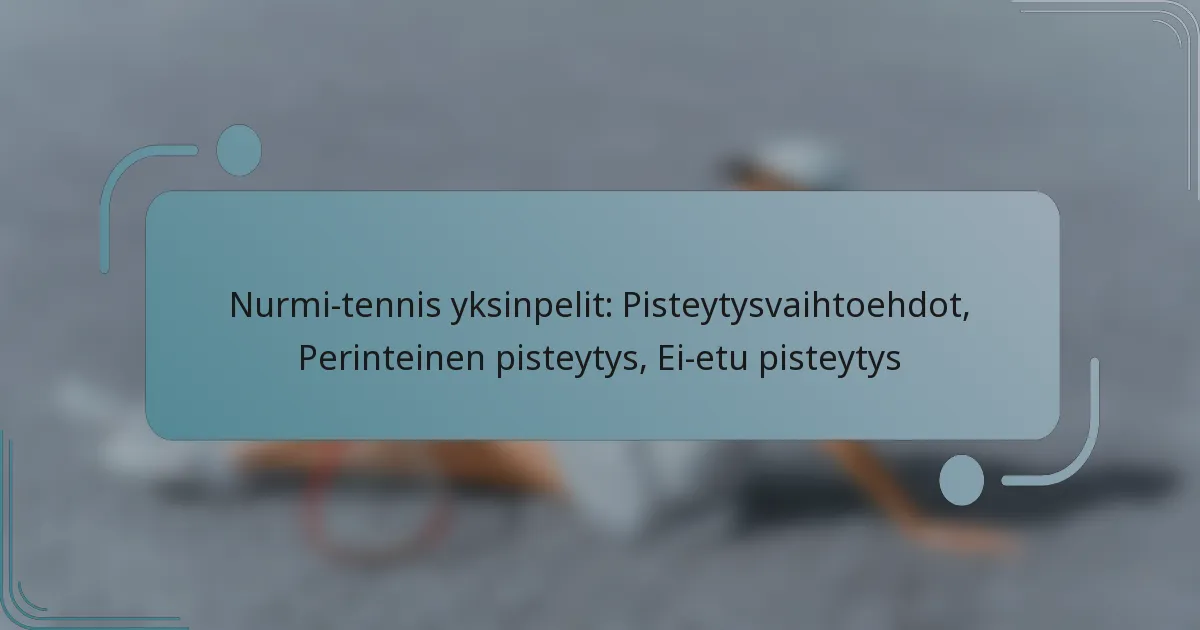 Pisteytysvaihtoehdot nurmi-tenniksen yksinpelissä määrittävät, miten pisteitä kerätään ja miten pelejä voitetaan. Perinteinen pisteytys sisältää pisteiden sekvenssin (15, 30, 40 ja peli), kun taas no-ad-pisteytys yksinkertaistaa tätä poistamalla etu-vaiheen tasatilanteen jälkeen. Näiden vaihtoehtojen ymmärtäminen on tärkeää sekä pelaajille että katsojille.