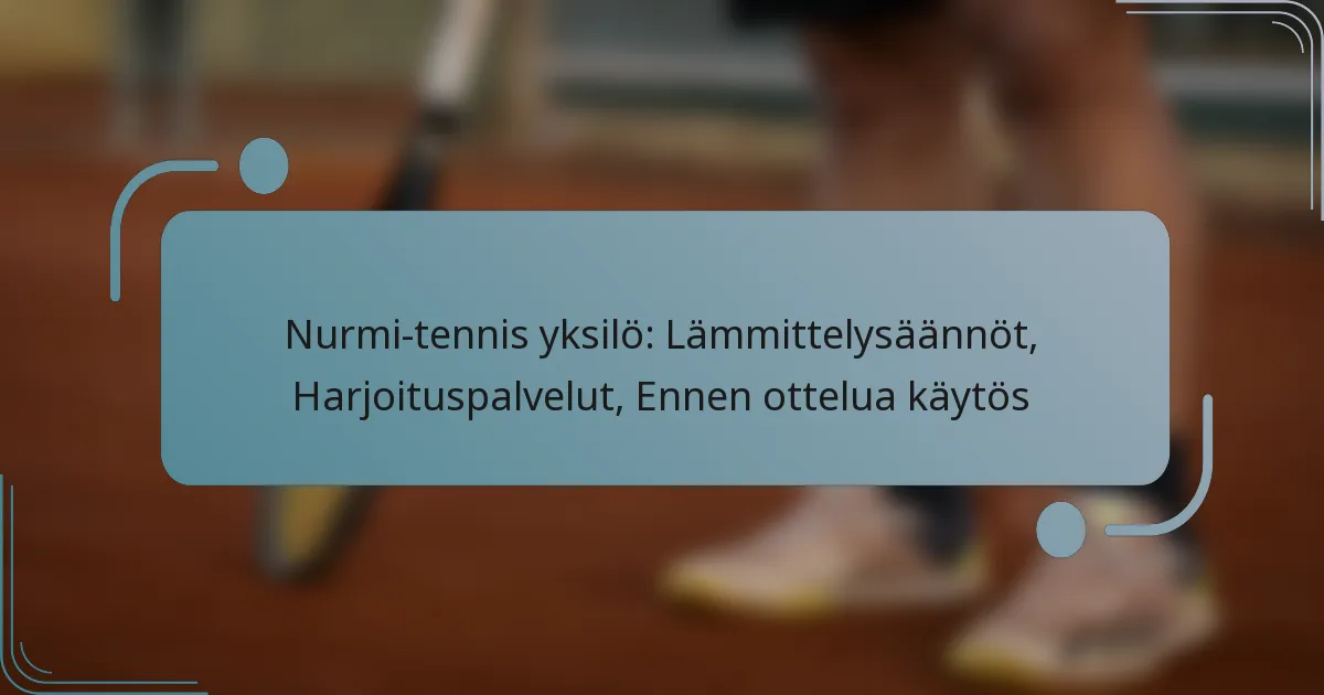 Ruohotenniksen yksinpelissä lämmittelysäännöillä on tärkeä rooli pelaajien valmistautumisessa kilpailuun samalla kun varmistetaan reiluus. Nämä ohjeet kattavat lämmittelyjen keston ja rakenteen sekä harjoittelun merkityksen syötöissä luottamuksen ja tarkkuuden lisäämiseksi. Lisäksi ennen ottelua käytös korostaa etikettiä ja urheiluhenkeä, mikä edistää kunnioittavaa ilmapiiriä, joka parantaa kokonaissuoritusta.